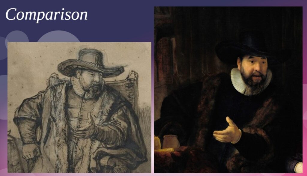 But to prepare the painting, Rembrandt, did a new sketch, now in the Louvre.