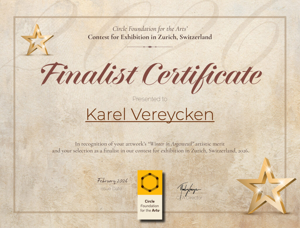 On Feb. 4, 2026, Franco-Belgian painter, engraver and historian Karel Vereycken was informed by the Circle Foundation for the Arts (CFA) that he was selected as a Finalist for the Zurich Art Exhibition this year with his etching « Winter in Argenteuil ».