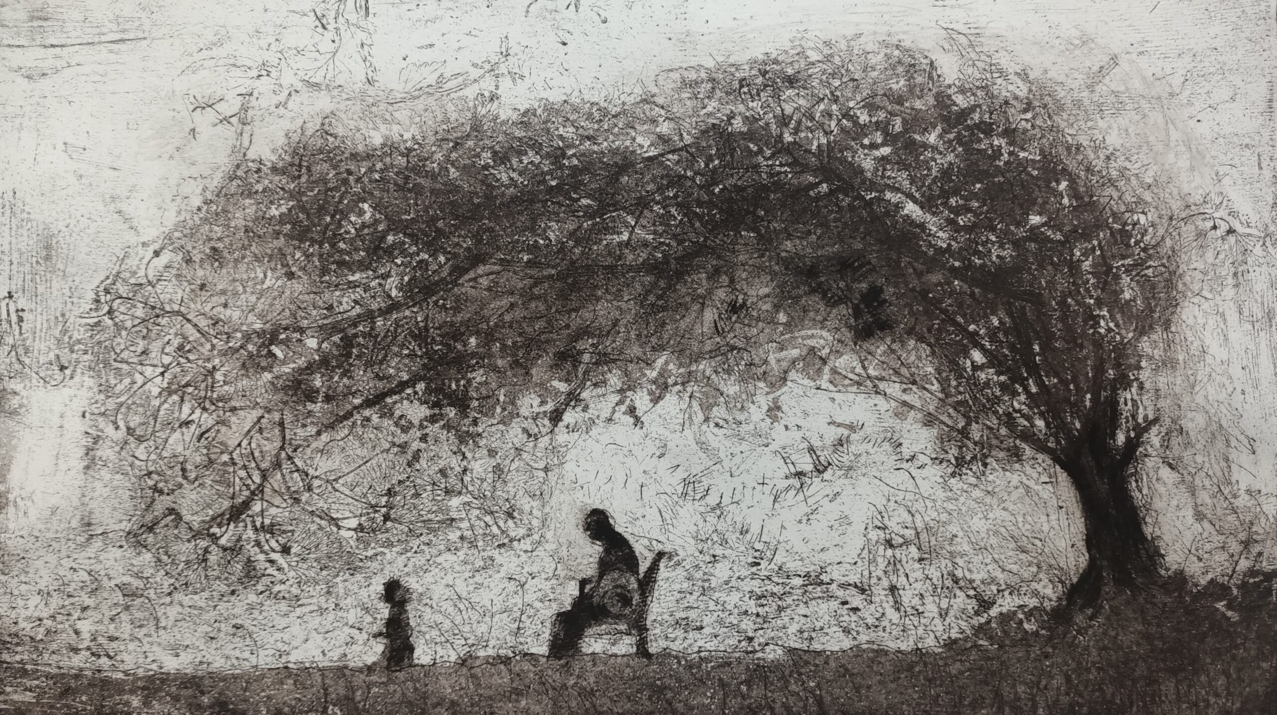 Karel Vereycken, L’Arbre de la vie, eau-forte sur zinc, vernis mou, bistre, 4e état, 40 x 23 cm, 2026.