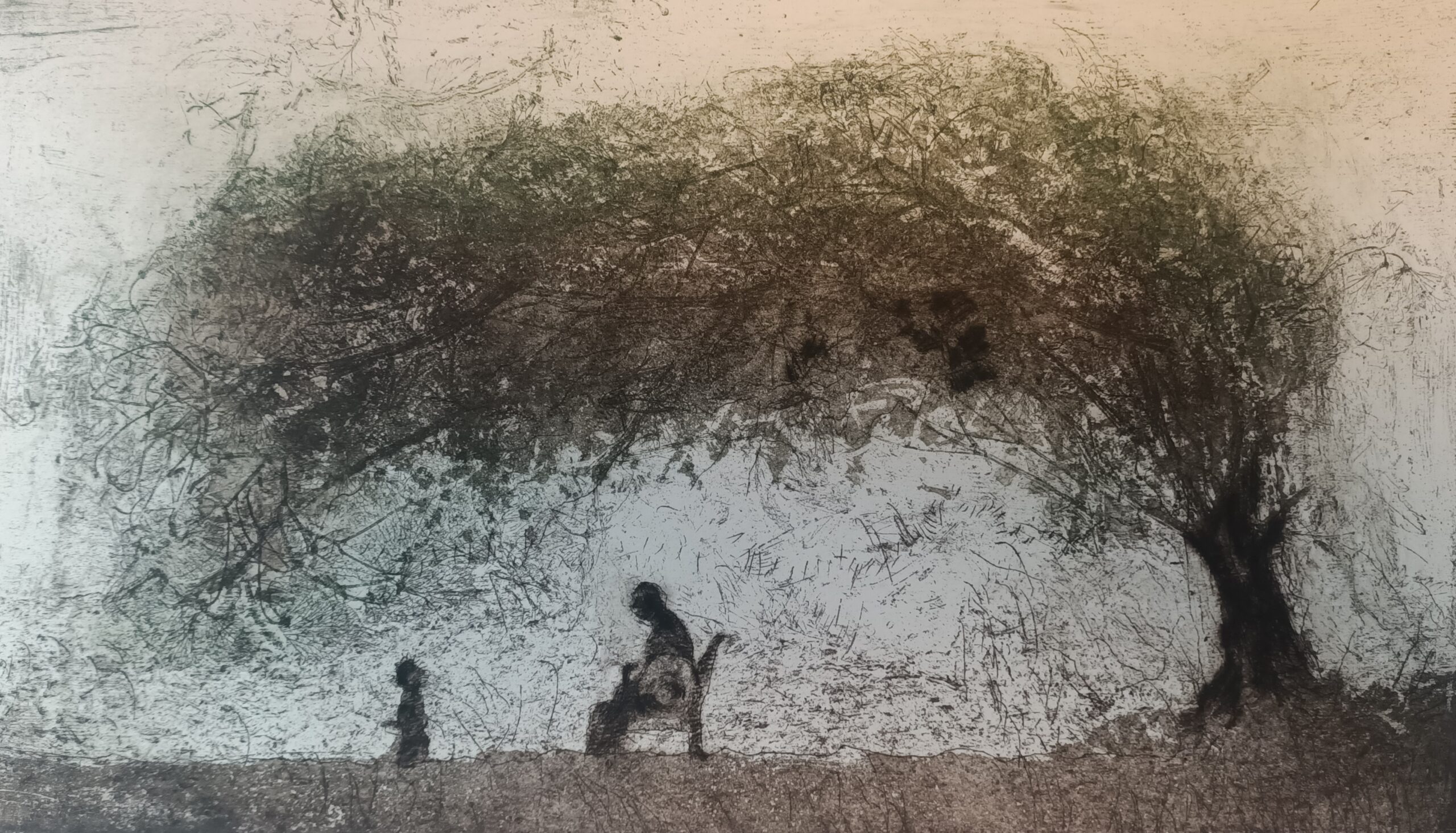 Karel Vereycken, L’Arbre de la vie, eau-forte sur zinc, vernis mou, vert de vessie, bistre, 4e état, 40 x 23 cm, 2026.